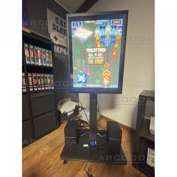Excellent monitor, huge and high quality. The colors are exceptional, and the contrast is good for an LCD screen. In horizontal mode (YOKO) with "pixel perfect" and a Mister FPGA, the entire screen isn't used, but that's normal; in Vertical mode (TATE), the image appears gigantic ! And it's really worth having this 35" monitor. I also noticed small white light areas on the sides near the frame, but they're discreet and not noticeable while gaming. To use the remote, you have to stand on the left side so the infrared LED picks up the signal. The remote doesn't come with instructions; only a few buttons work and allow you to navigate the menus. The monitor stand is decent quality and allows for very easy 90° rotations, which is great! Regarding the visual quality when using PCBs, you absolutely need a VGA scanline generator to get good visuals.