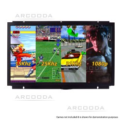 Designed specifically for Arcooda's Mercury cabinet, this monitor offers the ultimate versatility: seamlessly switch between JAMMA arcade games, HDMI sources, and even touchscreen PC gaming. When connected to your Steam or Epic Games accounts, the touchscreen eliminates the need for a keyboard and mouse, allowing for simple, direct interaction with just a touch.