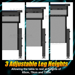 ADAPTABLE: the arcade machine has variable height positions (suitable for children or adults), and also has additional 4 feet which can be used to stop any movement and to stabilize the machine on uneven ground.