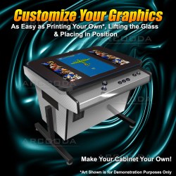 EASY ACCESS: our cocktail table can be unlatched and opens up for easy inspection. We use reinforced glass and it is an easy process if you would like to add your own graphics or designs.