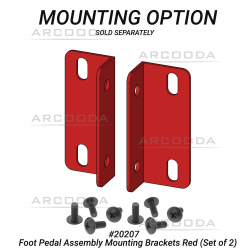 We also provide options to connect your foot pedal assembly to your arcade cabinet, as a set of 2 pieces including 8 mounting bolts. Made from 2.4mm powder coated steel, it includes left and right brackets in either Red, or Black.