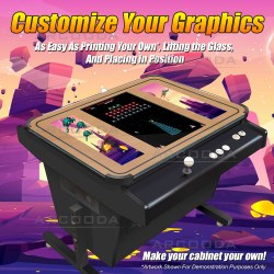 EASY ACCESS: the top of our cocktail table can be unlatched and opens up for easy inspection. We use reinforced glass and it is an easy process if you would like to add your own graphics or designs. No need to use tools to gain access to the internal sections of your machine and you can quickly make any repairs to buttons/joysticks, or adjust the joystick for different game play.
