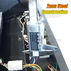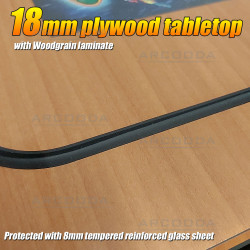 CONSTRUCTION: The machine has been constructed using heavy duty products to create a cabinet that is reliable and durable. It features 18mm laminated plywood cabinet, steel legs and player control panels and is topped with reinforced 8mm glass. The height can be adjusted using the legs and the cabinet uses a modular design for easy exchange of parts.