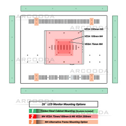 A professional 26 inch LCD Monitor designed for all arcade machines and retro game enthusiasts and a direct replacement for CRT tube monitors. The 26" arcade LCD panel offers a 4:3 viewing ratio with RGB, VGA and HDMI inputs and supports 15khz 24khz 31khz, and high definition up to 1600 x 1200 UXGA resolution. Low response time, great colour depth the custom arcade monitor firmware.